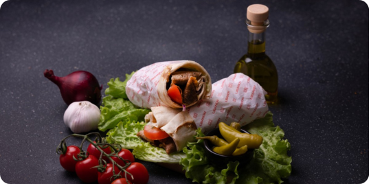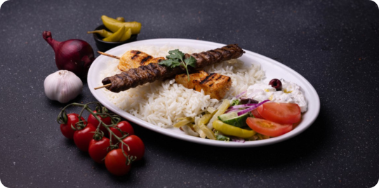 TOMAT, OST, LÖK, FEFERONI, KEBABKÖTT, KEBABDRESSING